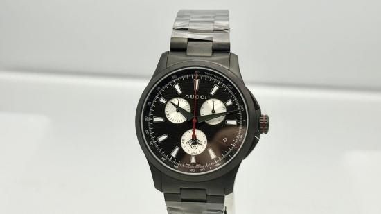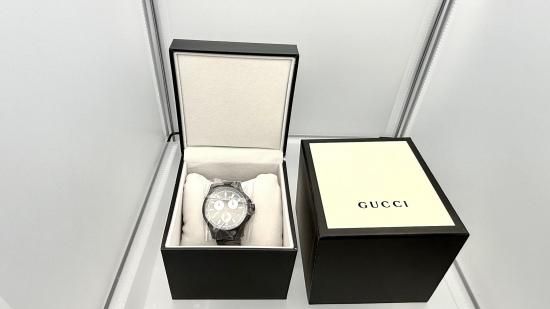 グッチ (Gucci) の「YA126268 Gタイムレス」は、エレガンスと機能性を兼ね備えた高級時計です。オールブラックのステンレススチール製の円形ケースとベルトの組み合わせは、どんなスタイルにもマッチし、クールで洗練された印象を与えます。