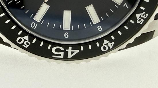 この時計の重さは約110gで、長時間の装着でも快適な着け心地を保ちます。45mmのケースサイズは、存在感を放ちながらも腕元に自然にフィットします。